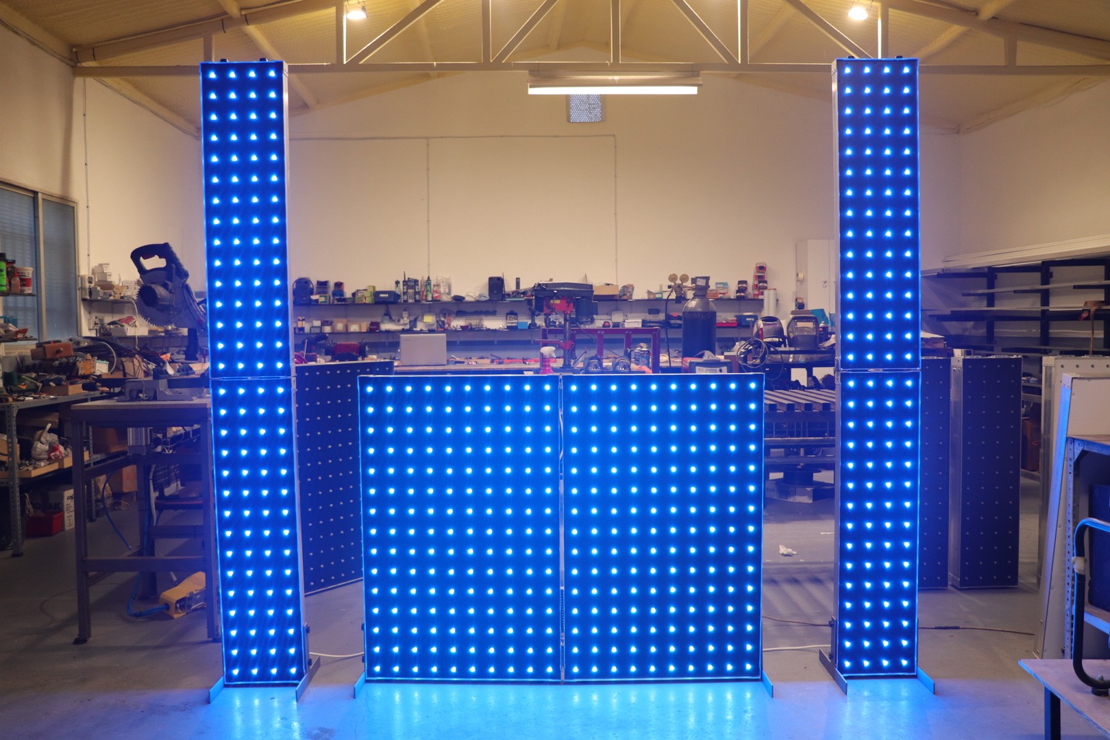 Las ventajas de nuestras cabinas DJ LED Px son innumerables. Además de los efectos visuales impactantes, estas cabinas son portátiles y fáciles de montar en cualquier escenario. También ofrecemos accesorios adicionales para potenciar aún más tu experiencia. Las luces cegadoras, por ejemplo, son luces potentes que se colocan en la parte superior de cada panel y se activan con un pedal, brindándote control total sobre la iluminación de tu presentación.
